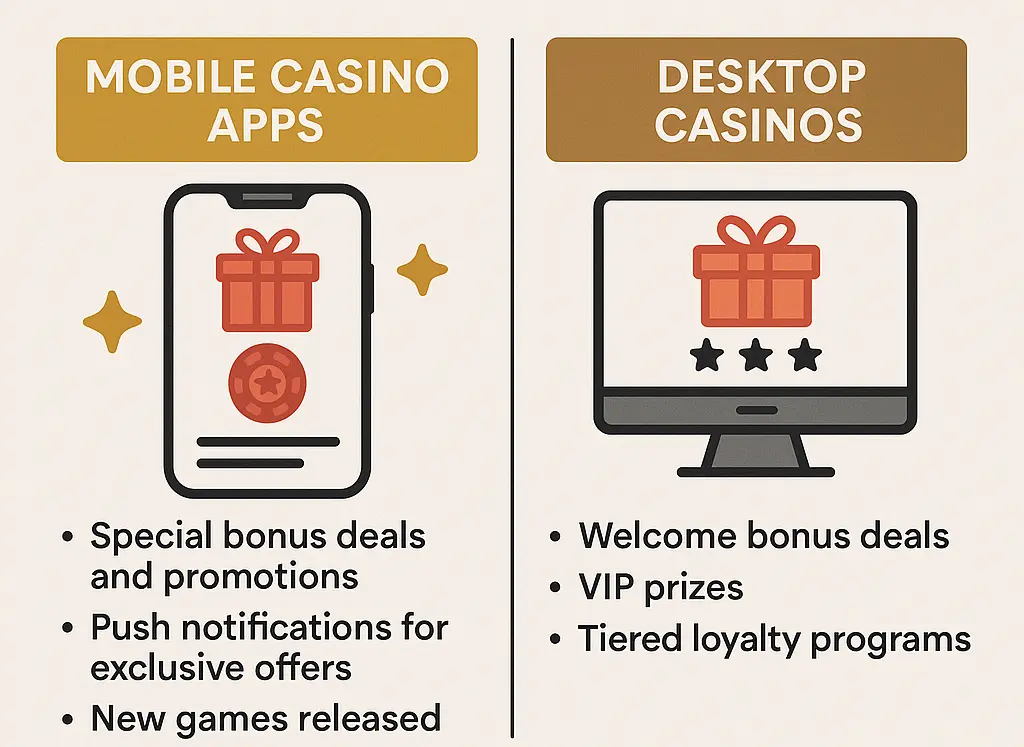 Promotional diversity is also applied to desktop casinos, as customers have the chance to acquire their welcome bonus deals or VIP prizes in case of dedicated gameplay. For instance, if players become members of tiered loyalty programs, there is a list of bonus awards to unlock based on their rank.